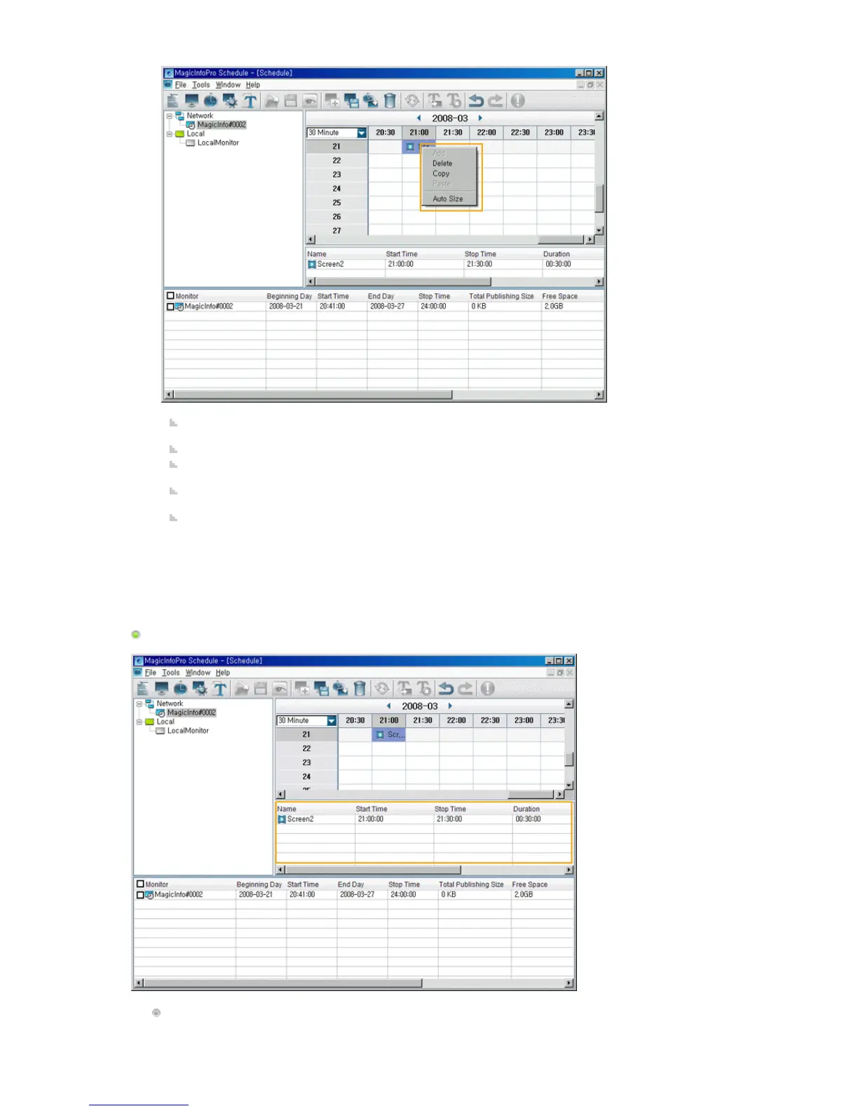 Add: Adds the screen you wish to schedule after selecting a monitor and time by clicking in the