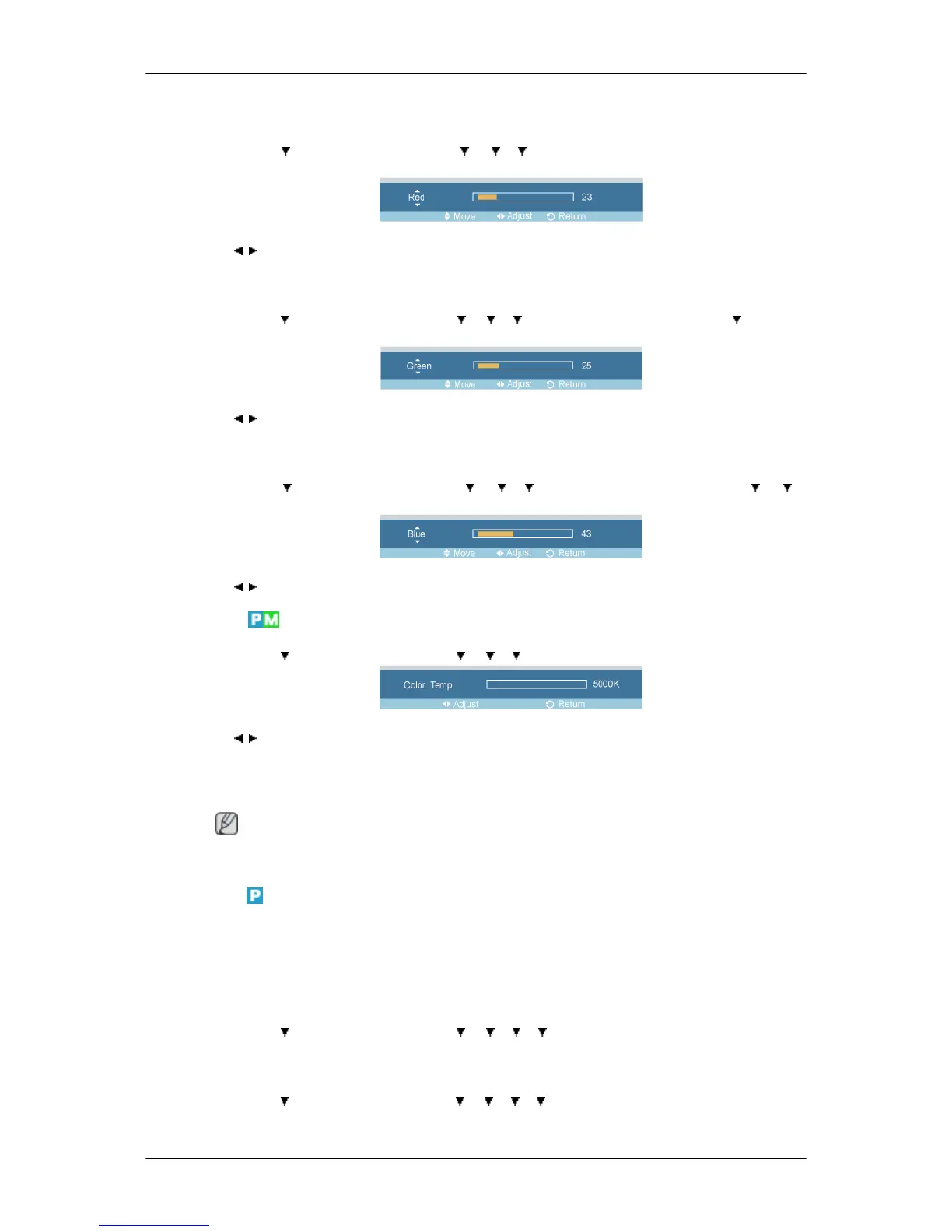 MENU → → ENTER → [Picture] → → → → ENTER → [Color Control] → → →