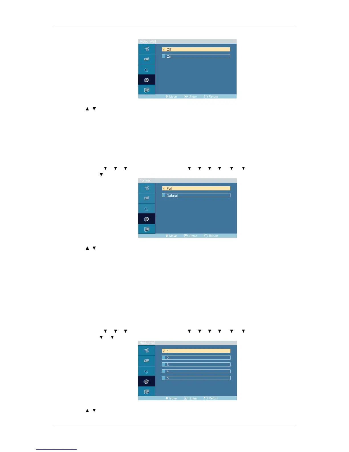 Turns Off/On the Video Wall function of the selected display Off/On.