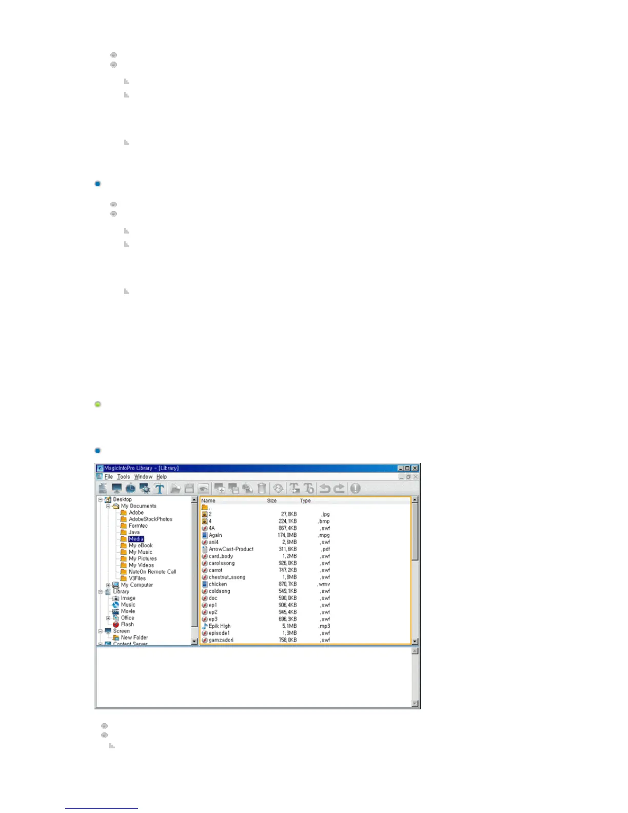 Displays the subfolders and screen files below the selected folder in the list window on the right by