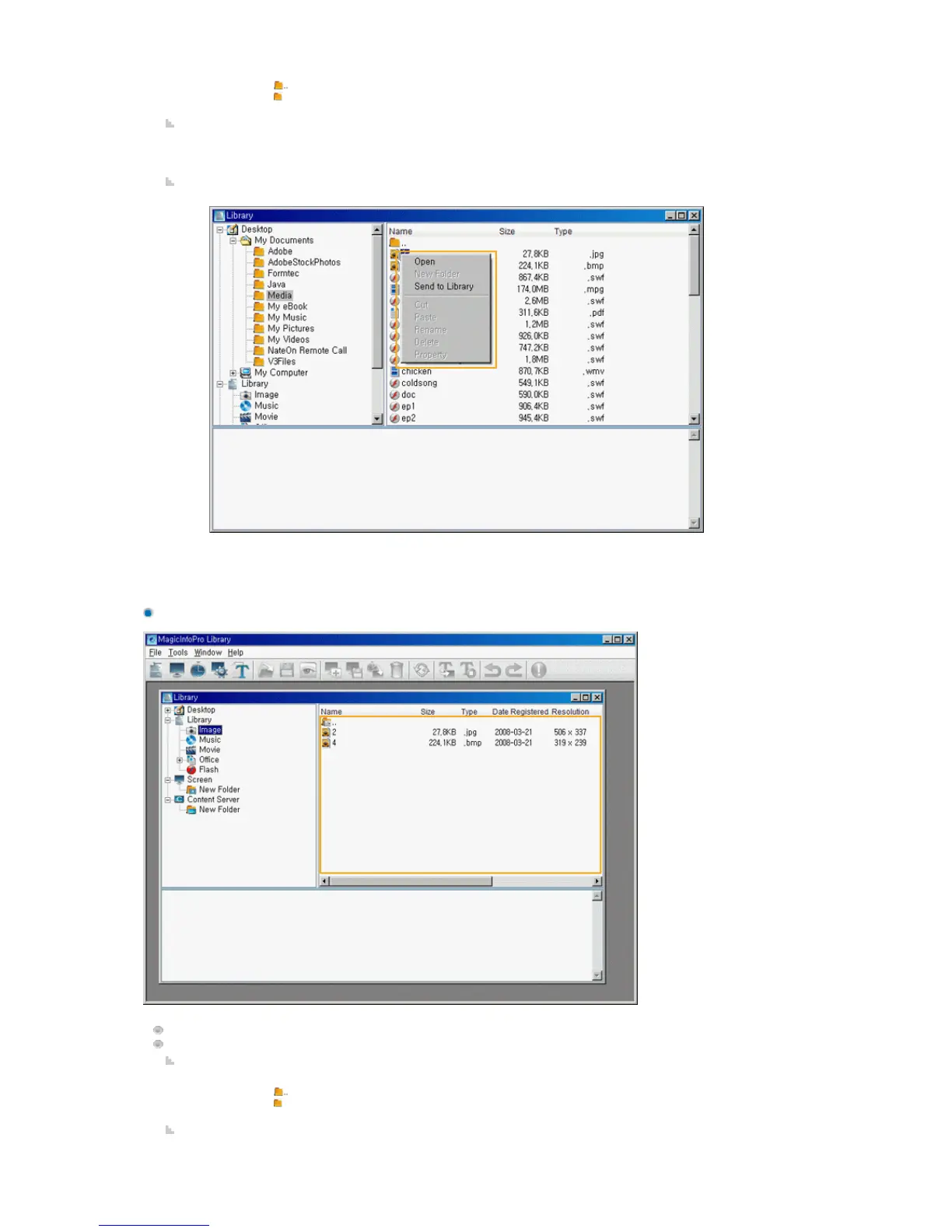 Send To Library: If you click Send To Library for the selected files, they are registered to the library.