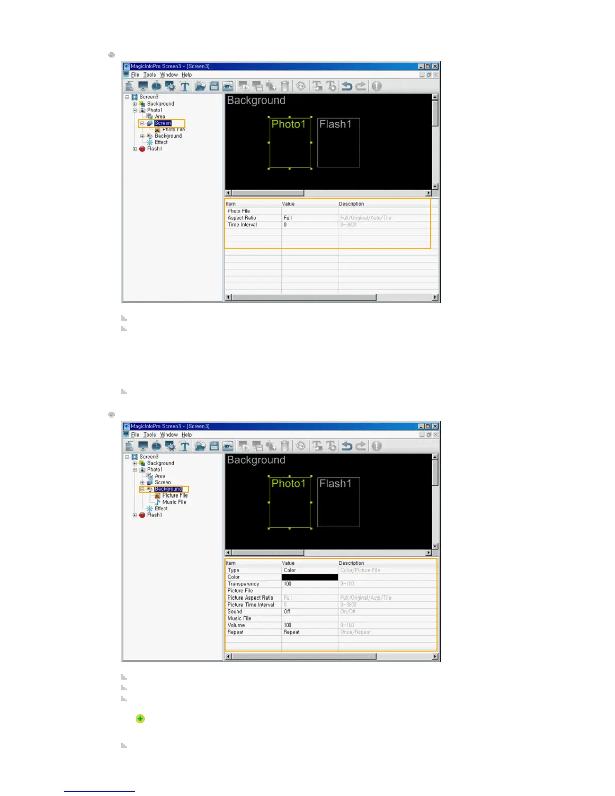 Photo File: Selects a photo file to play in the Photo area.