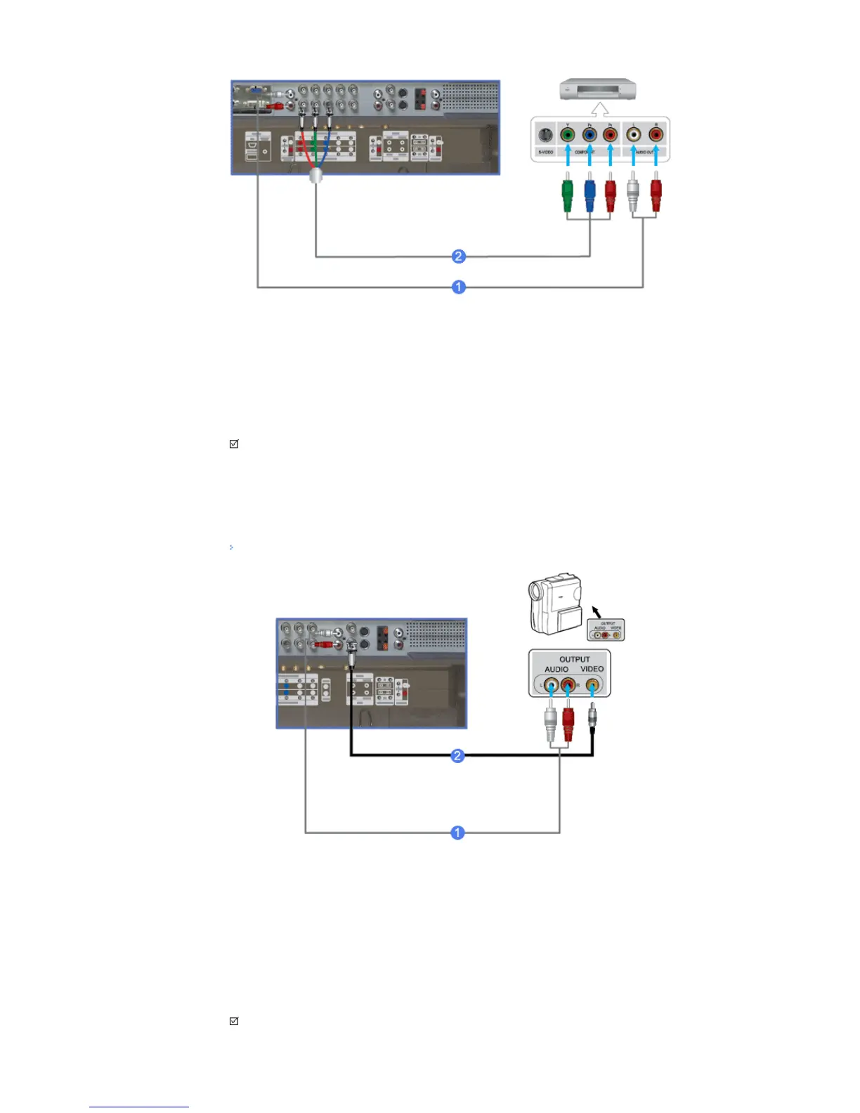 2) Connect a video cable between the VIDEO OUTPUT jack on the camcorder and the AV IN [VIDEO] on the