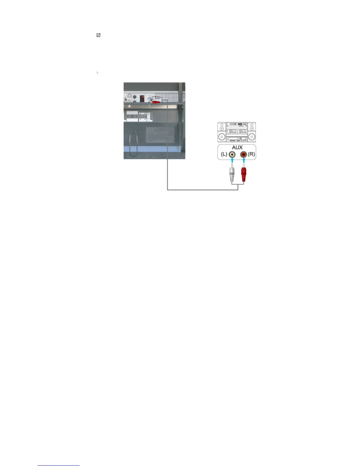 1) Connect a set of audio cables between the AUX L, R jacks on the AUDIO SYSTEM and the AUDIO OUT