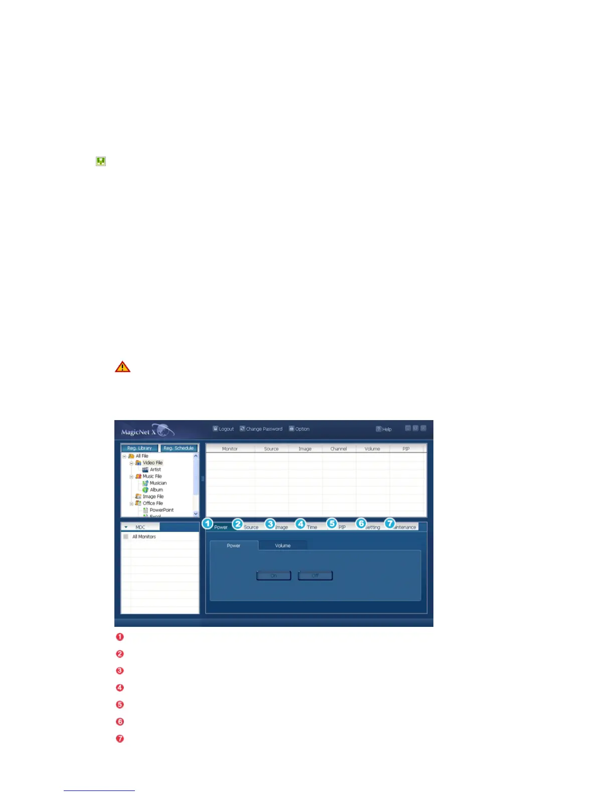 5. After selecting a monitor, click each MDC tab to run the detailed functions.