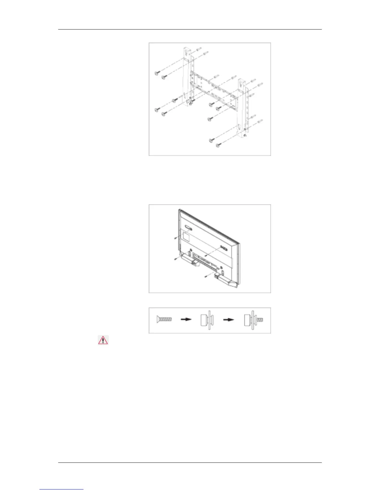 3. Tighten the 4 screws in step 2 (plastic hanger + screw B)to the rear holes of the product.