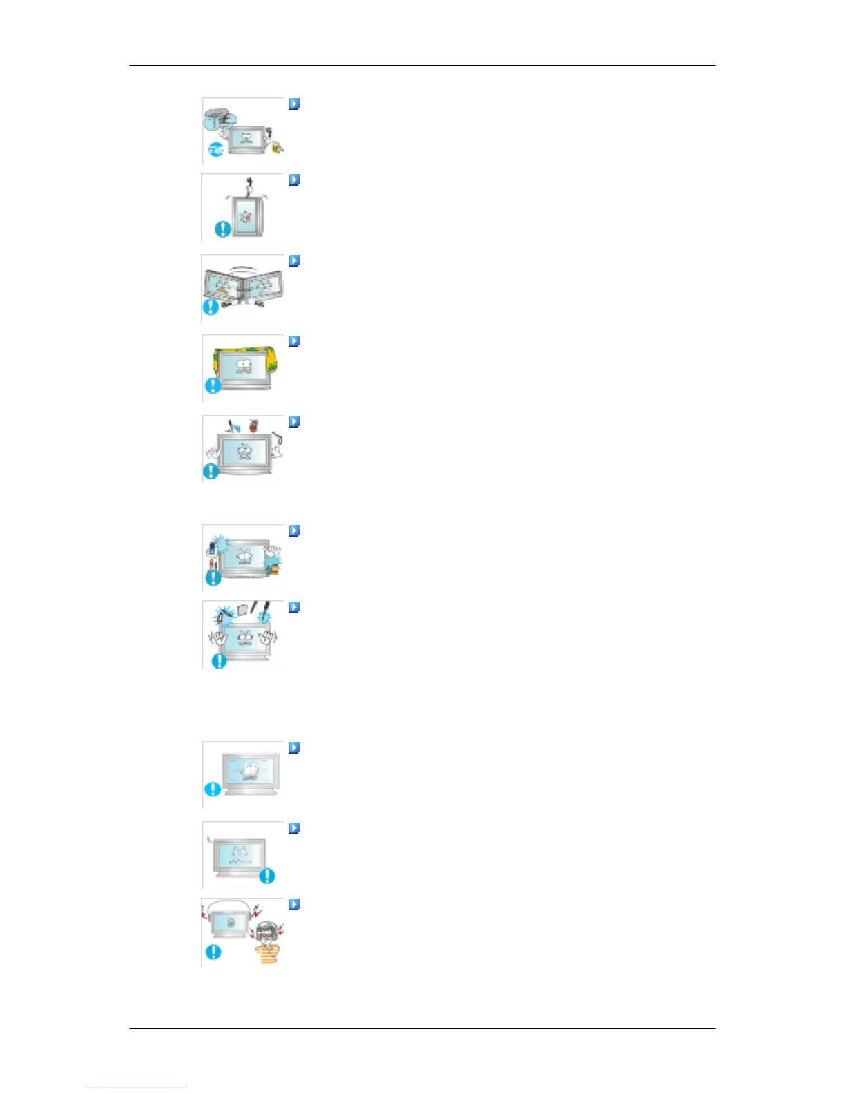 • Otherwise, it may fall and result in electric shock, damage to