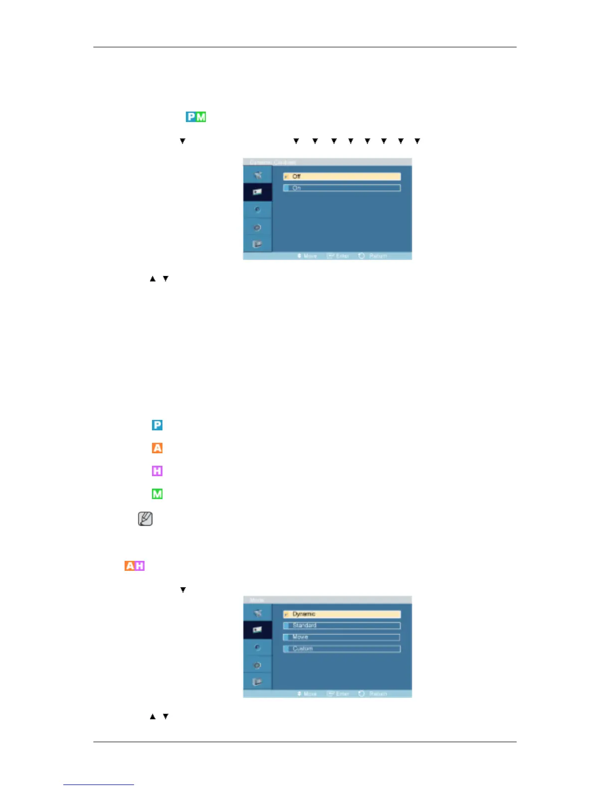 MENU → → ENTER → [Picture] → → → → → → → → → ENTER → [Dynamic