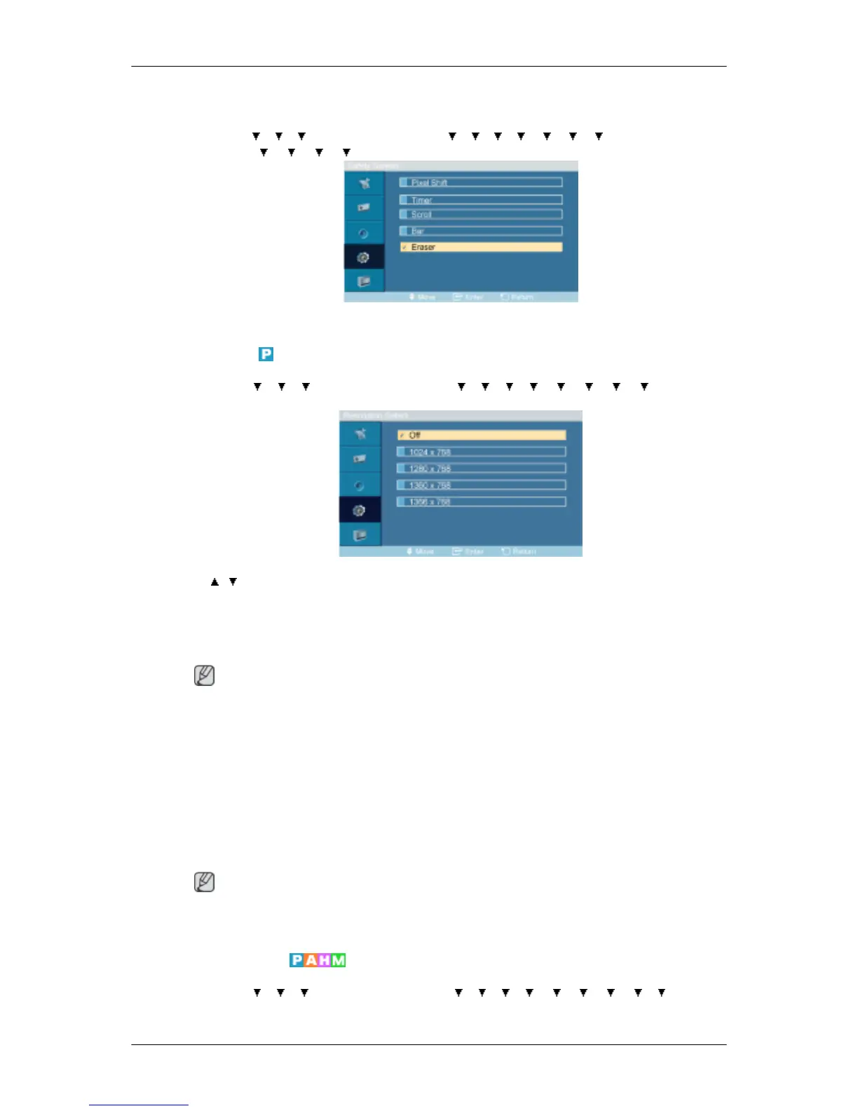 This function prevents after-images on the screen by moving a rectangular pattern.