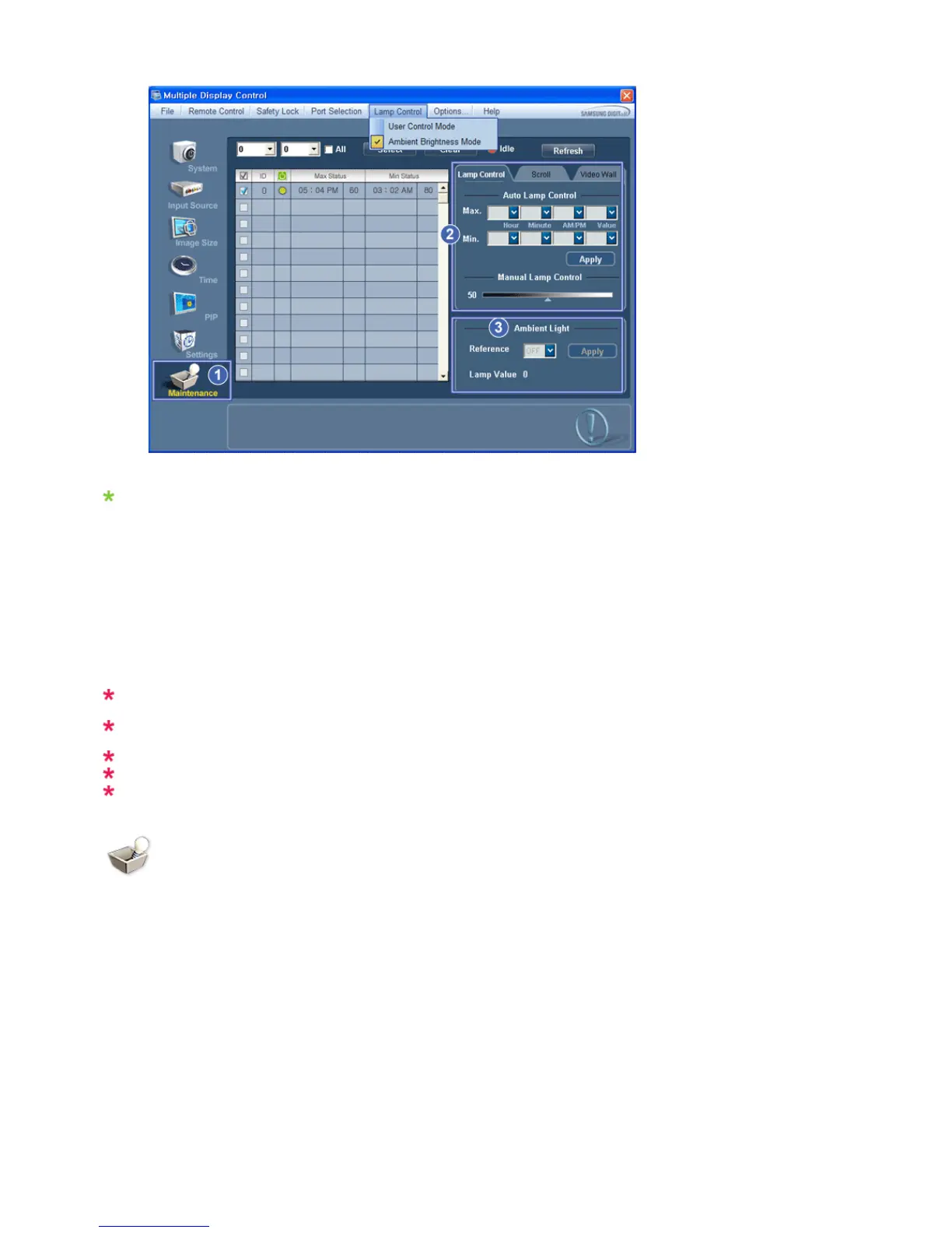 the Lamp Control menu.