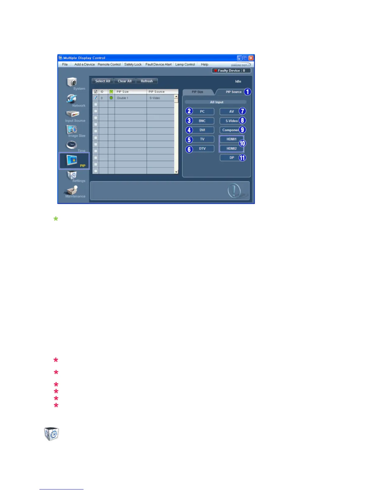 The PIP Control feature is available only for the displays whose power status is ON and the PIP