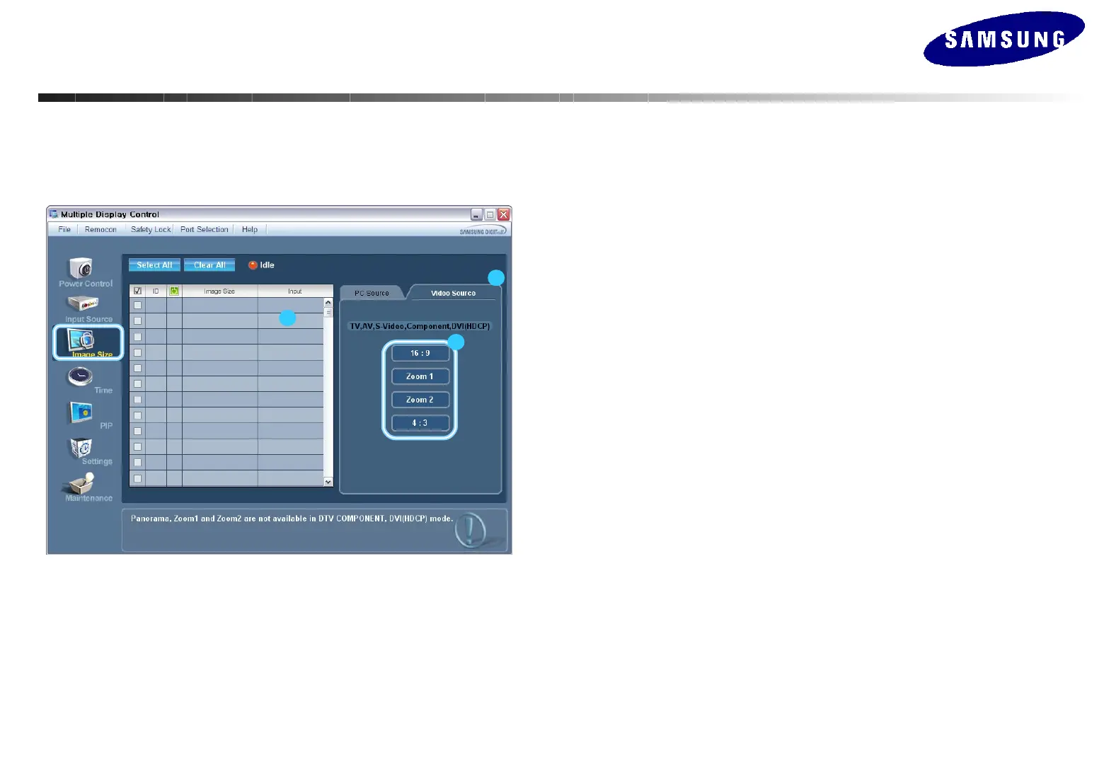 DVI(HDCP). Click Select All or use Check Box to select a display to control.
