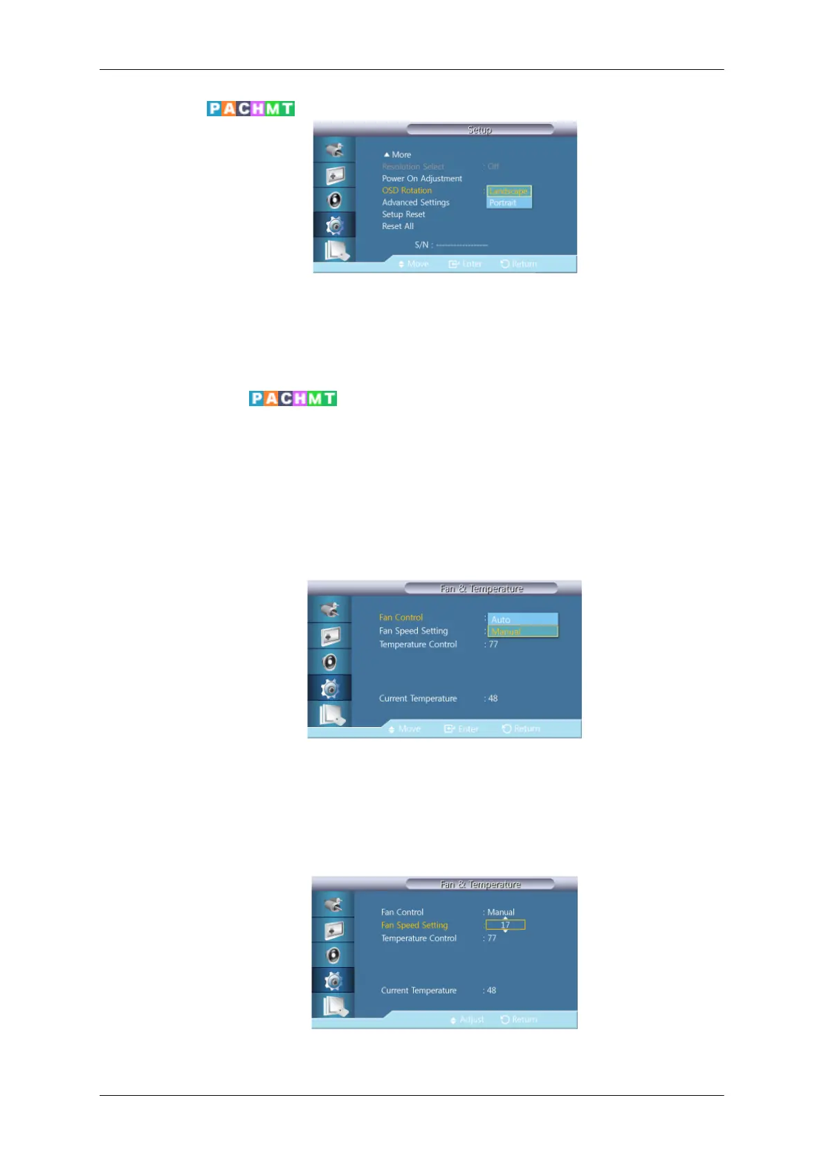 Samsung SyncMaster 460TS-3 - OSD Rotation; Advanced Settings; Fan & Temperature; Fan Control