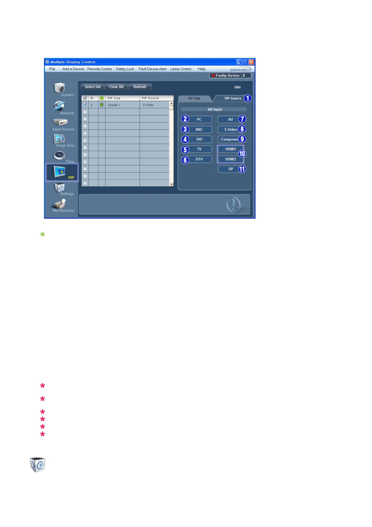 The PIP Control feature is available only for the displays whose power status is ON and the PIP