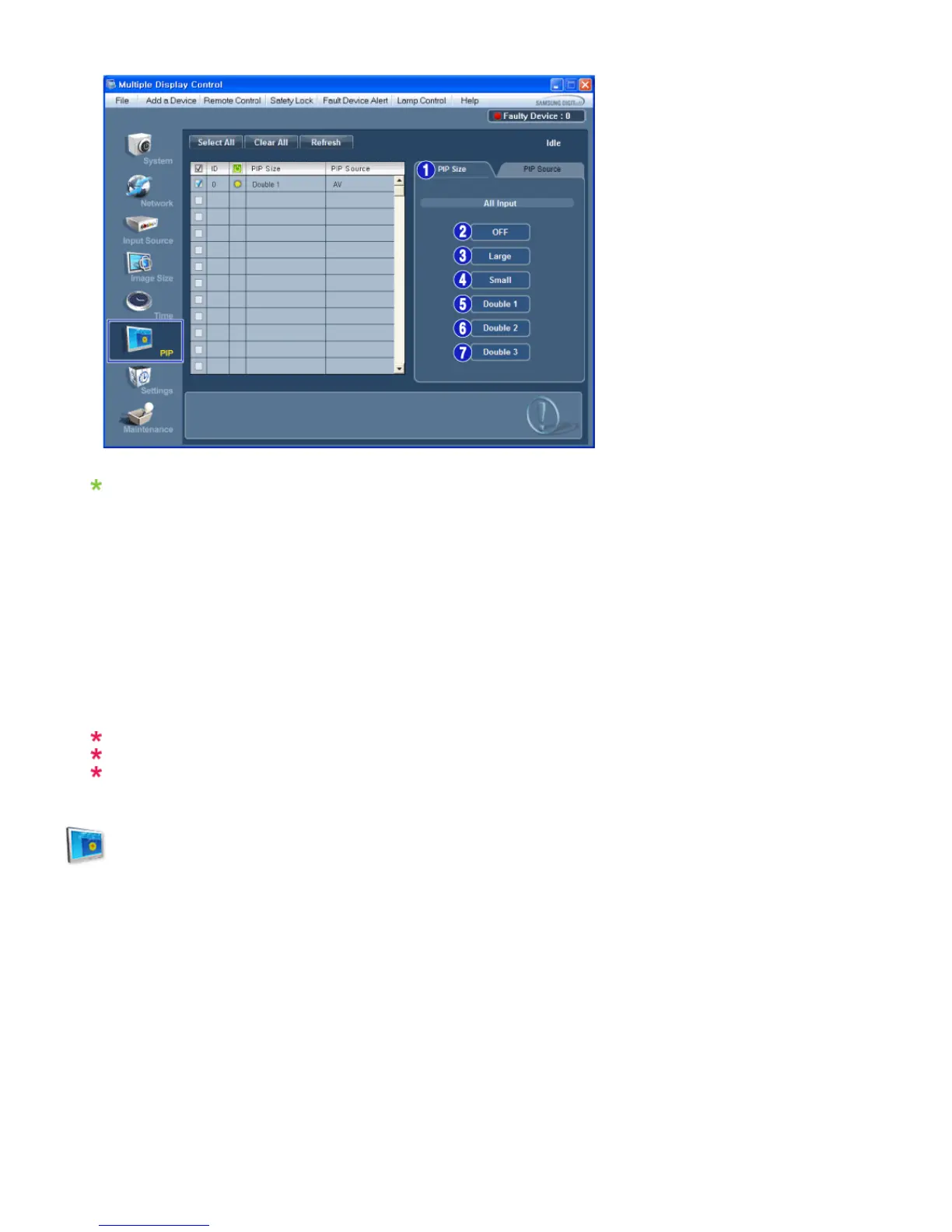 - Shows the current PIP Size of the display in use.