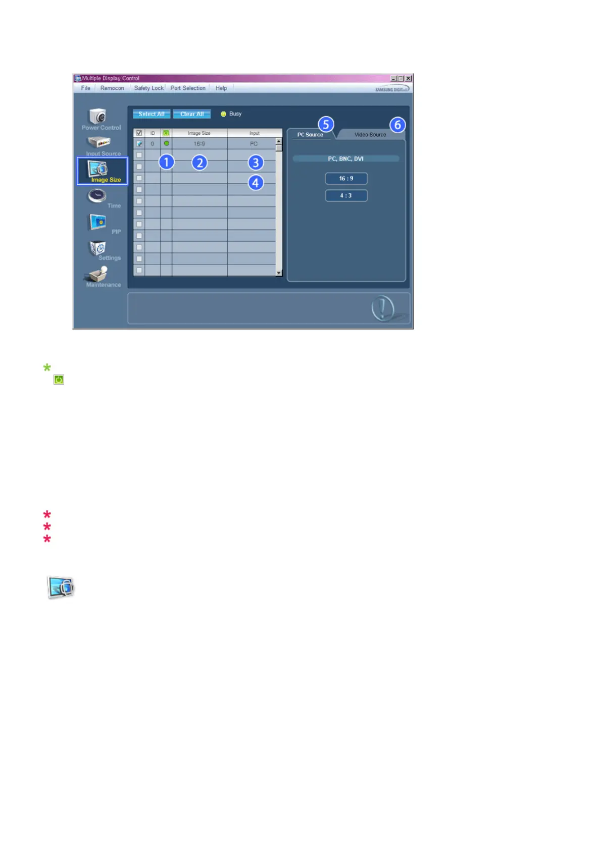 4) Info Grid displays only the displays whose Input Source is PC, BNC, DVI.