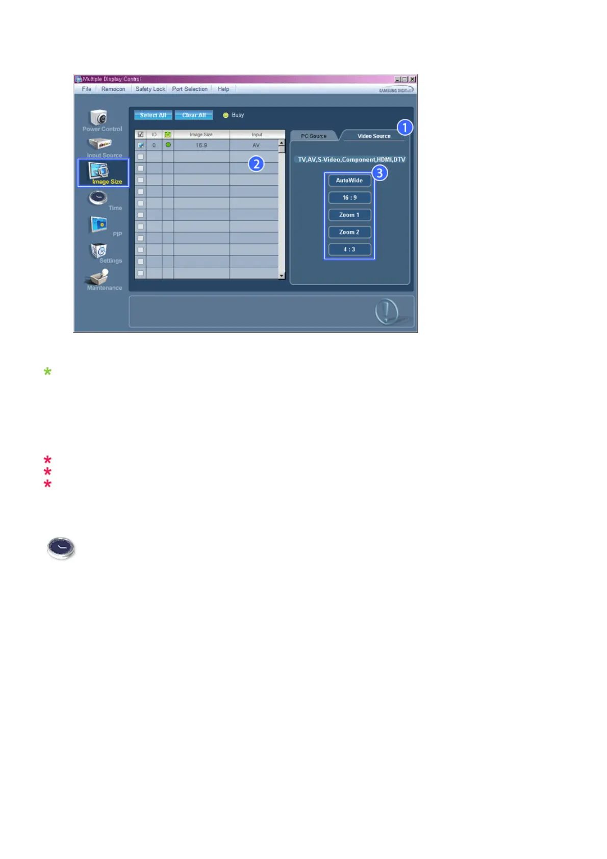 The Image Size Control feature is available only for the displays whose power status is ON.