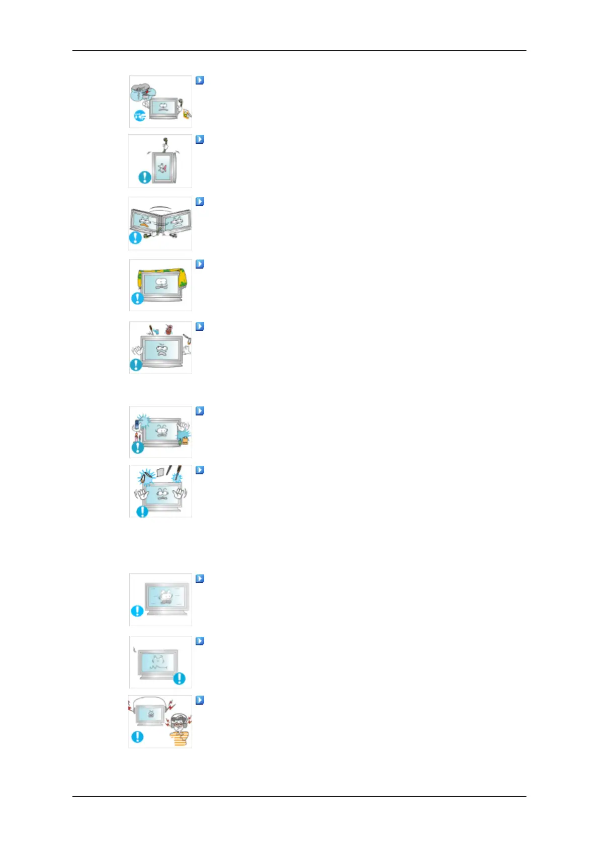 • Otherwise, it may fall and result in electric shock, damage to