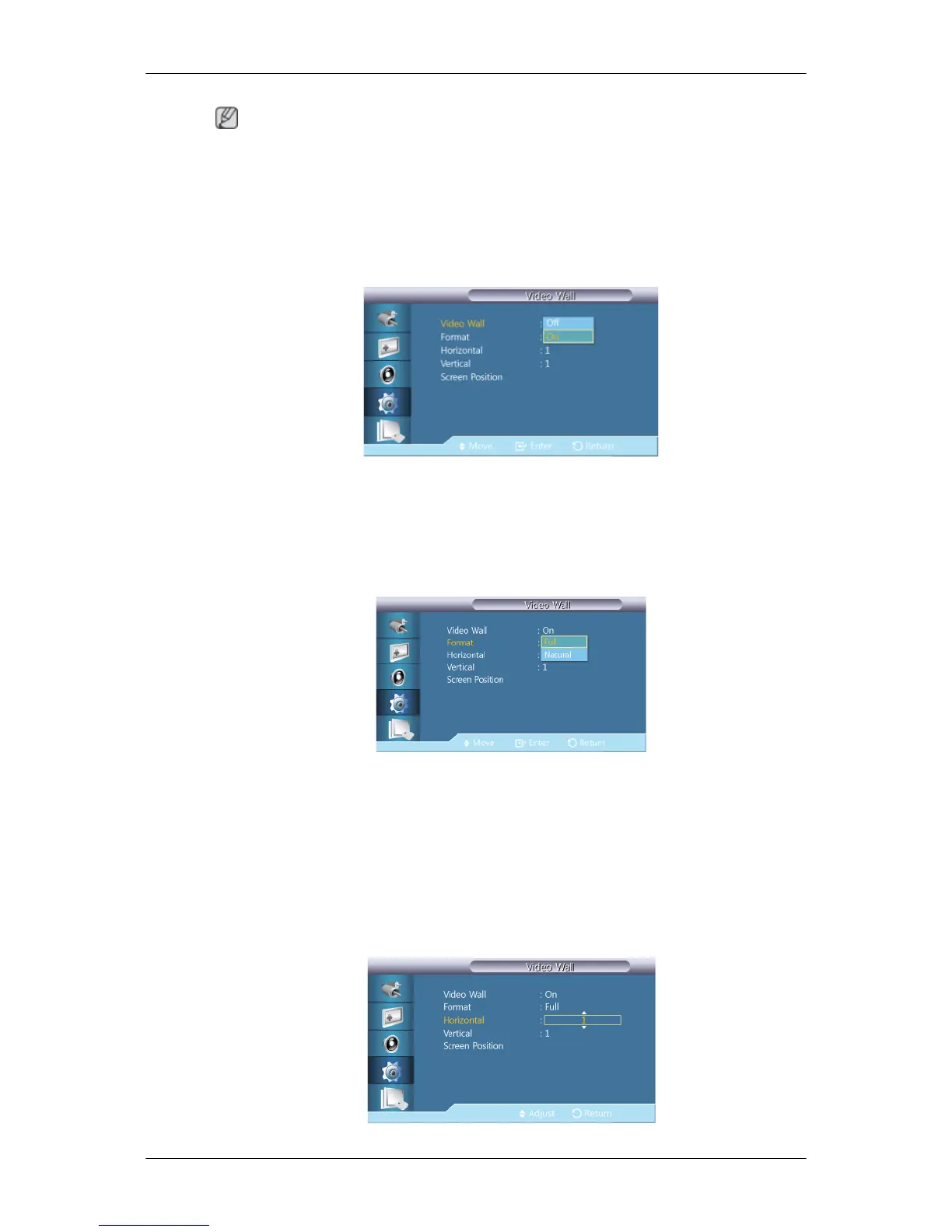 Turns Off/On the Video Wall function of the selected display Off/On.