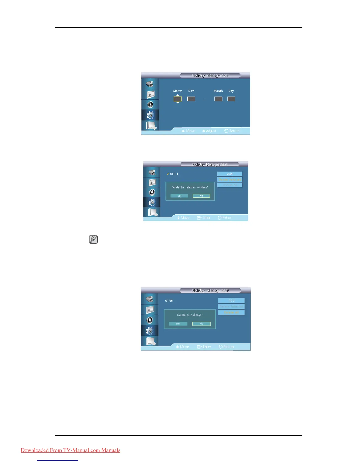 • More than one holiday can be selected and deleted.