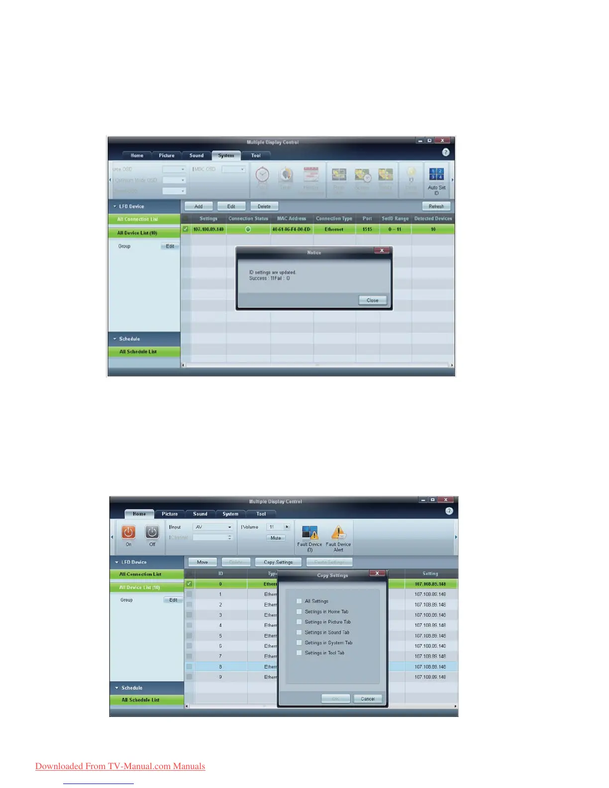 Using the Cloning feature, you can copy the setting of one LFD and apply it to multiple selected LFDs.