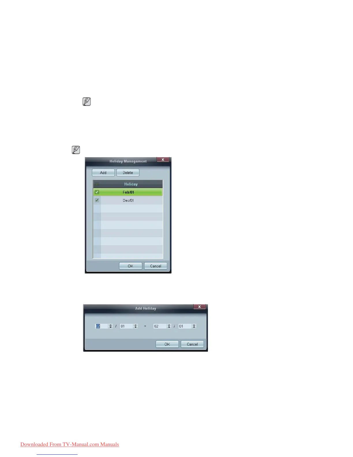 Click the Add button in the Holiday Management window.