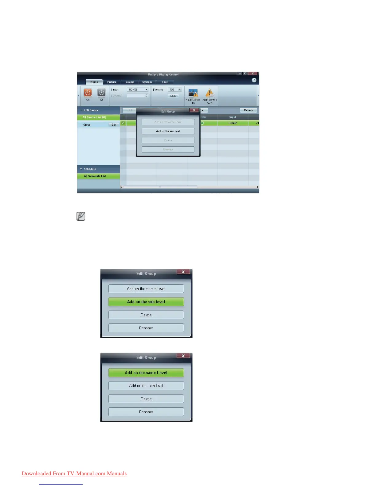 1 Right-click and select Group>Edit in the display device list section on the left side of the program