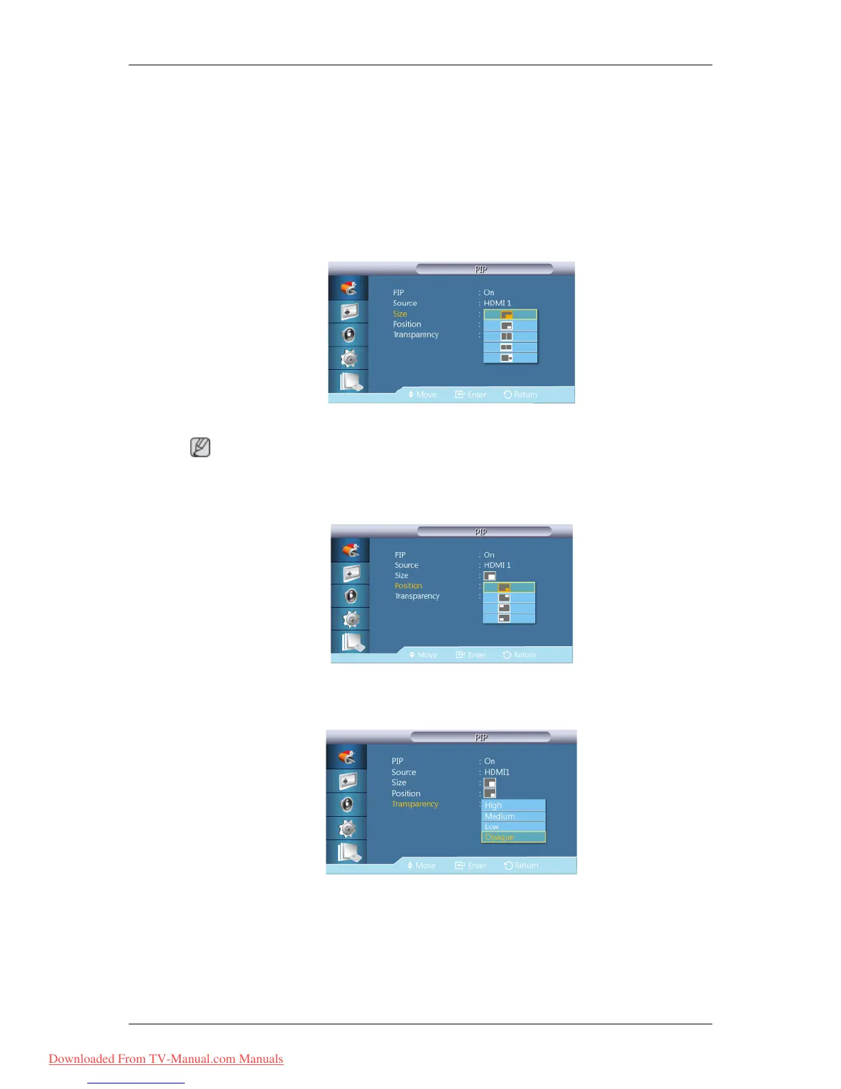 Adjusts the Transparency of PIP windows.