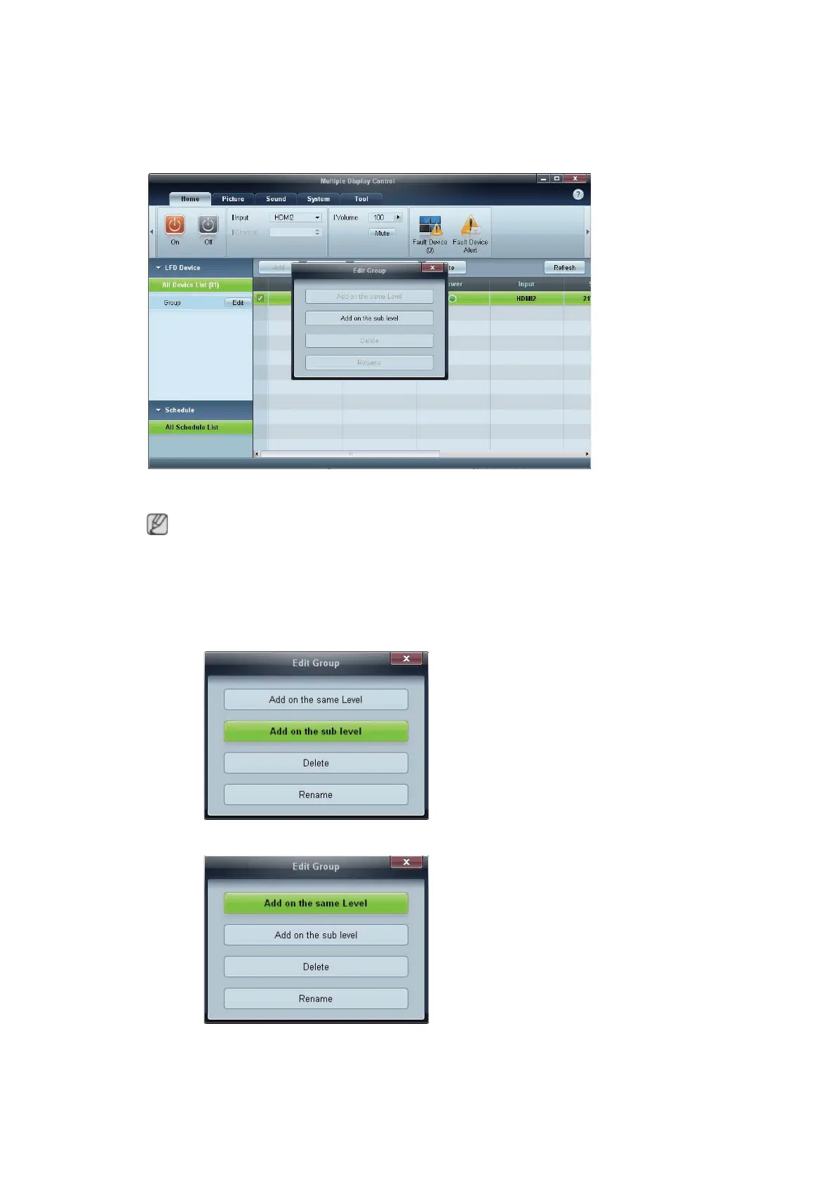 1 Right-click and select Group>Edit in the display device list section on the left side of the program