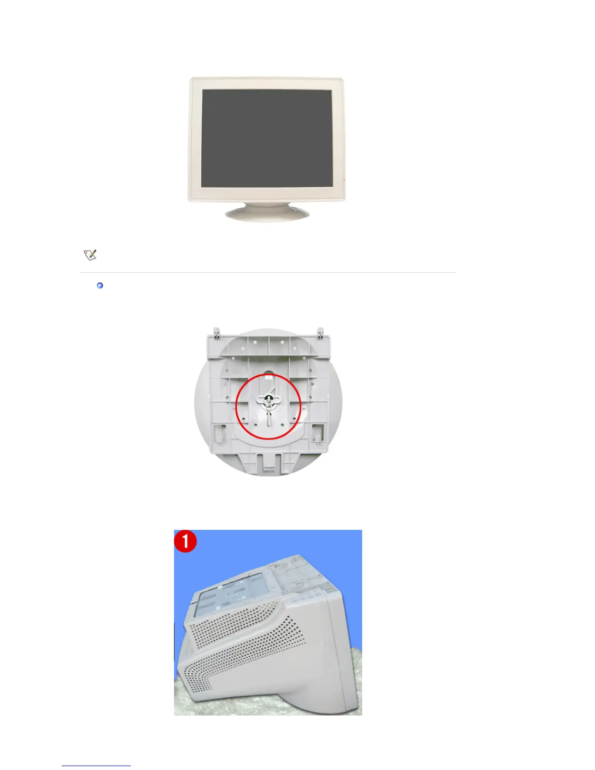 Remove the twist-tie before attaching the base to the monitor.