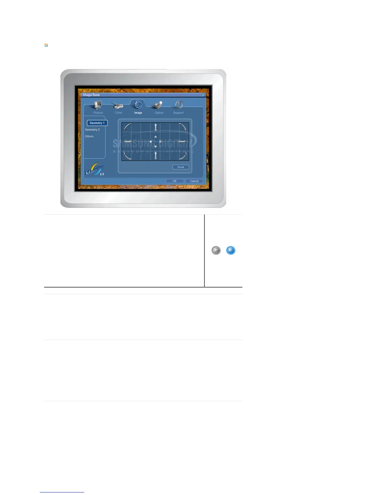 Adjusts the Pincushion, Pinbalance, Trapezoid and Parallelogram