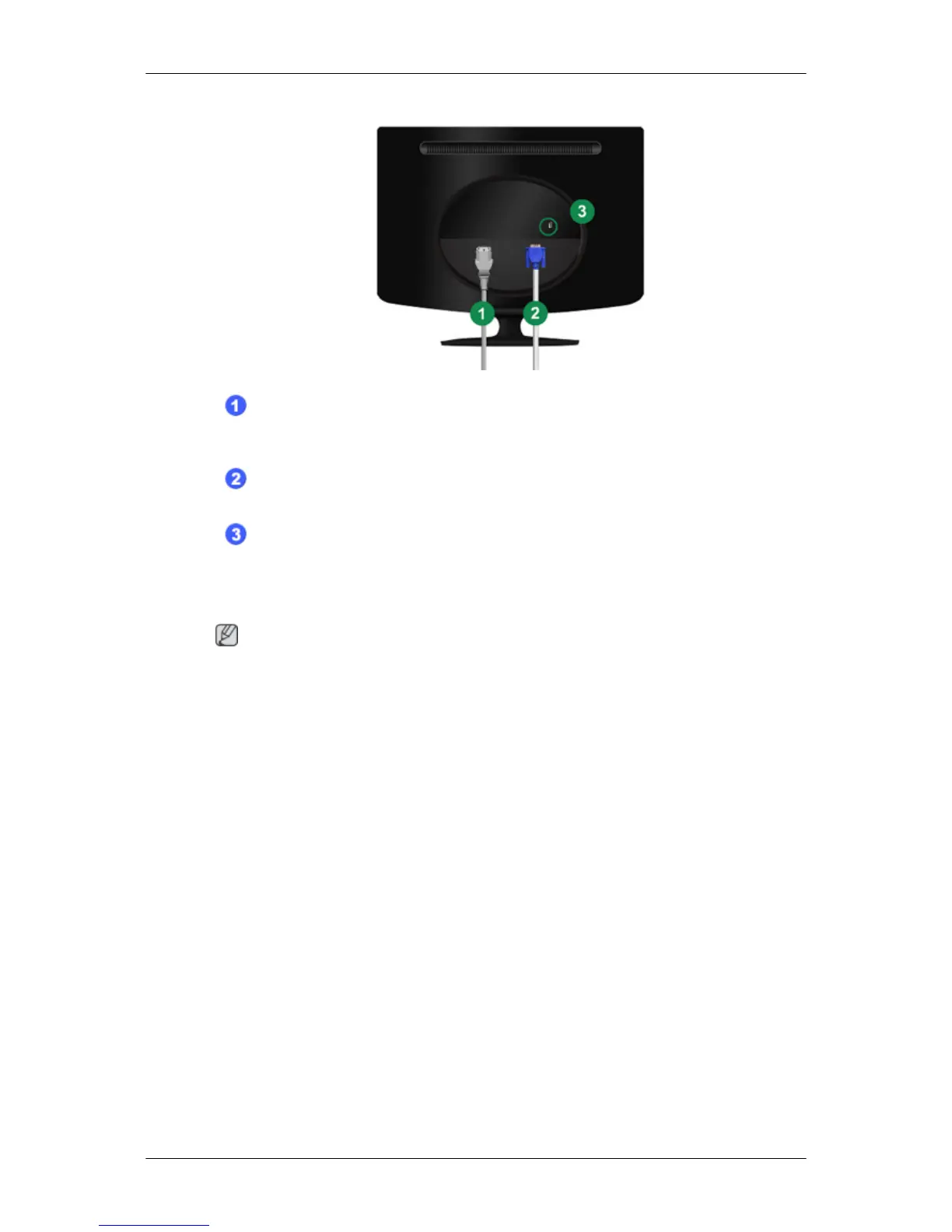 Connect the D-sub cable to the 15-pin, RGB IN port on the back of your monitor.