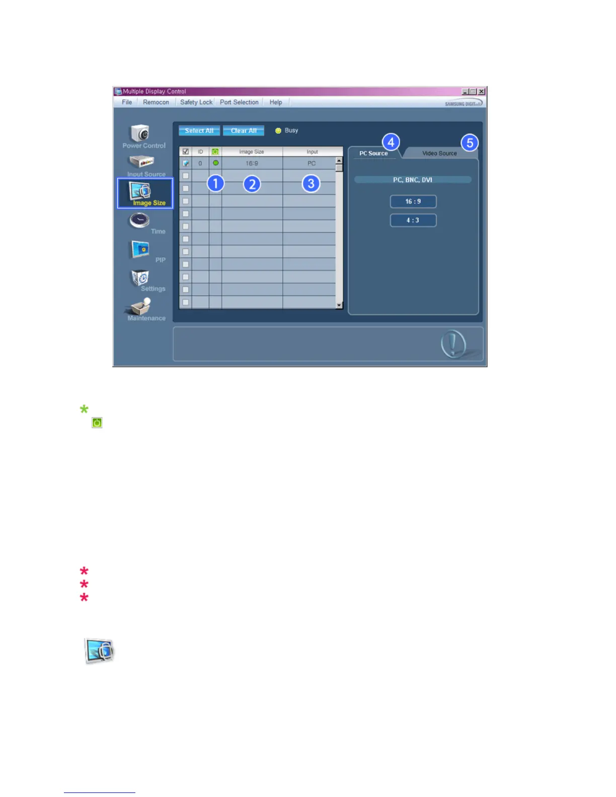 Image Size Control is available only for the displays for which power status is ON.