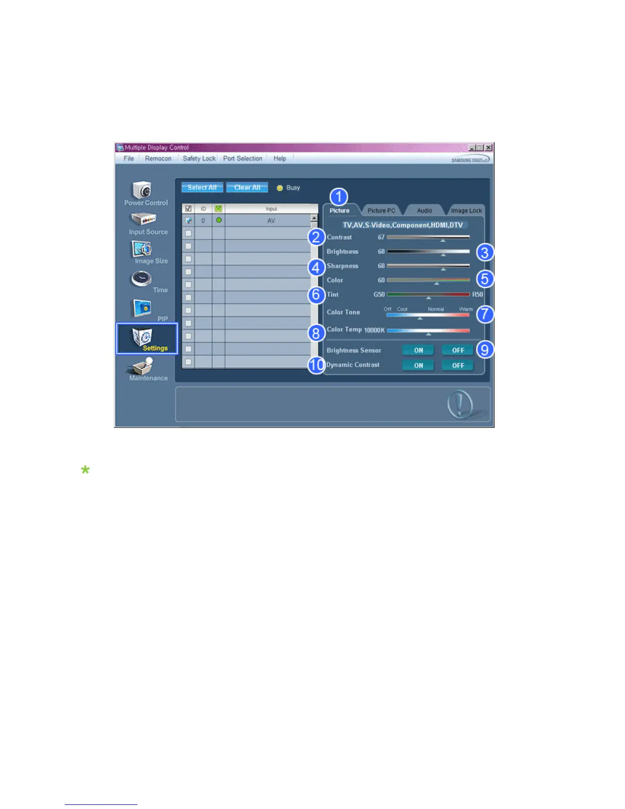 - Available only for TV, AV, S-Video, Component, HDMI, DTV.