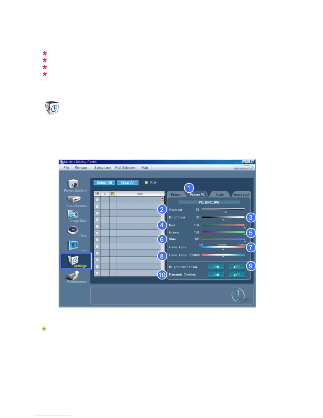 Info Grid shows some basic information necessary to Settings Control. When each function is selected, the set value