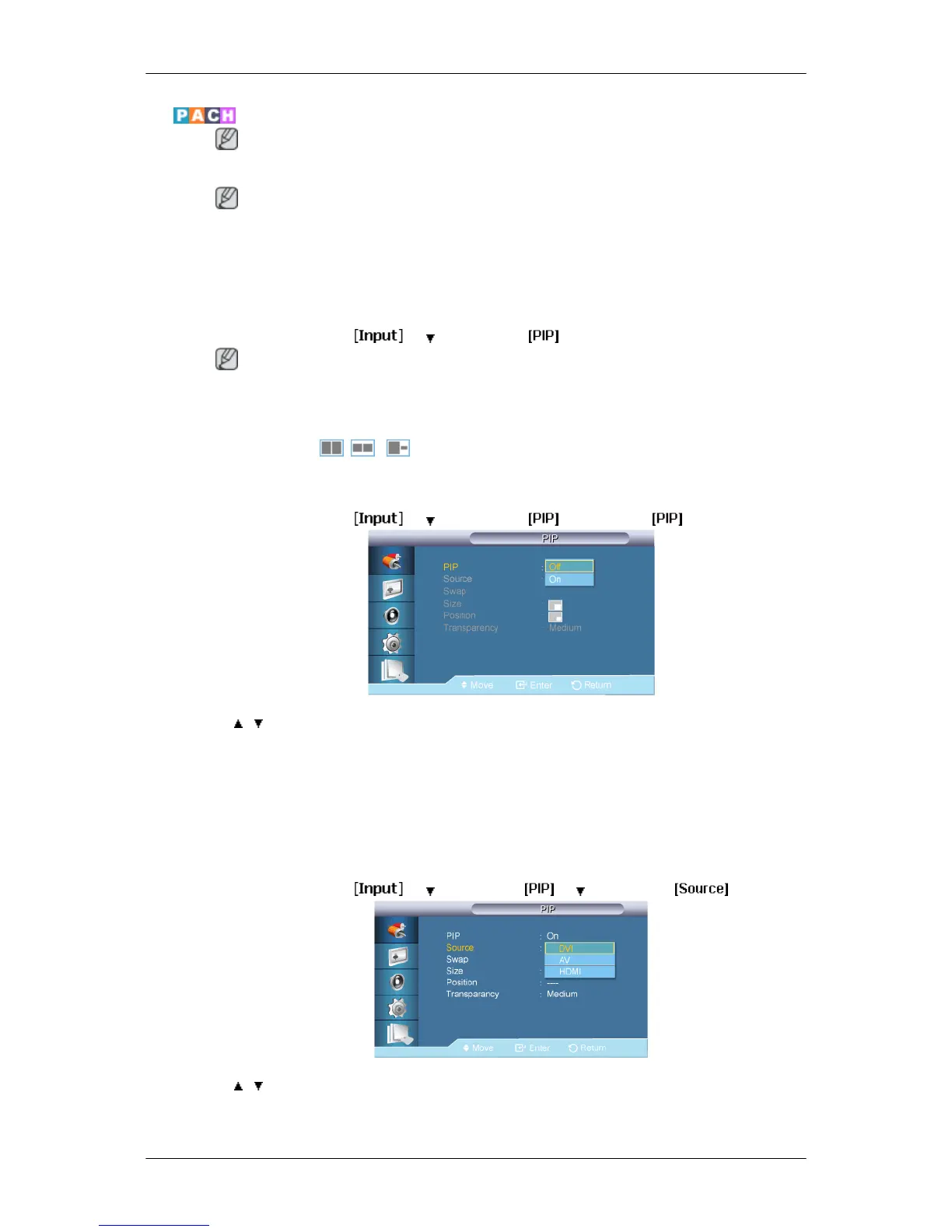 The PIP function is not available when Video Wall is On.