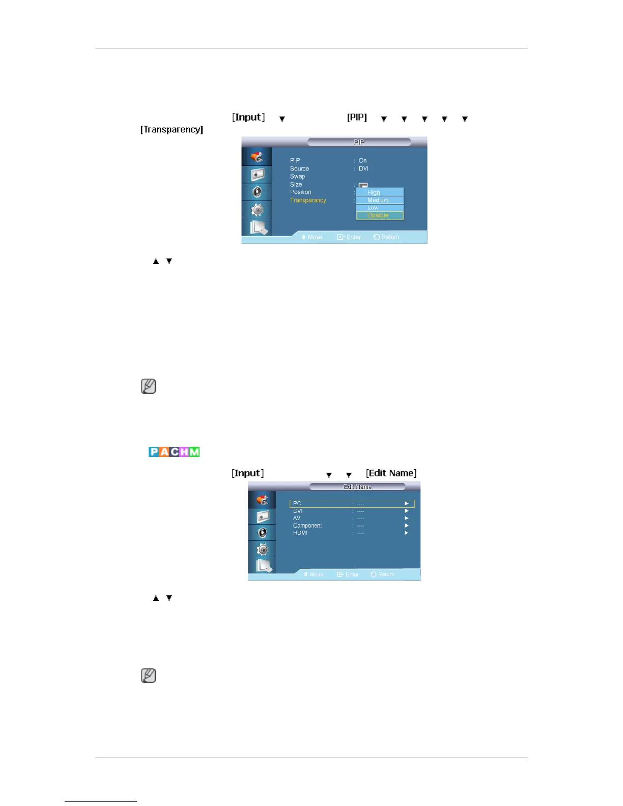 • When connecting a PC to the HDMI or DVI terminal, set Edit Name to PC. In other cases,