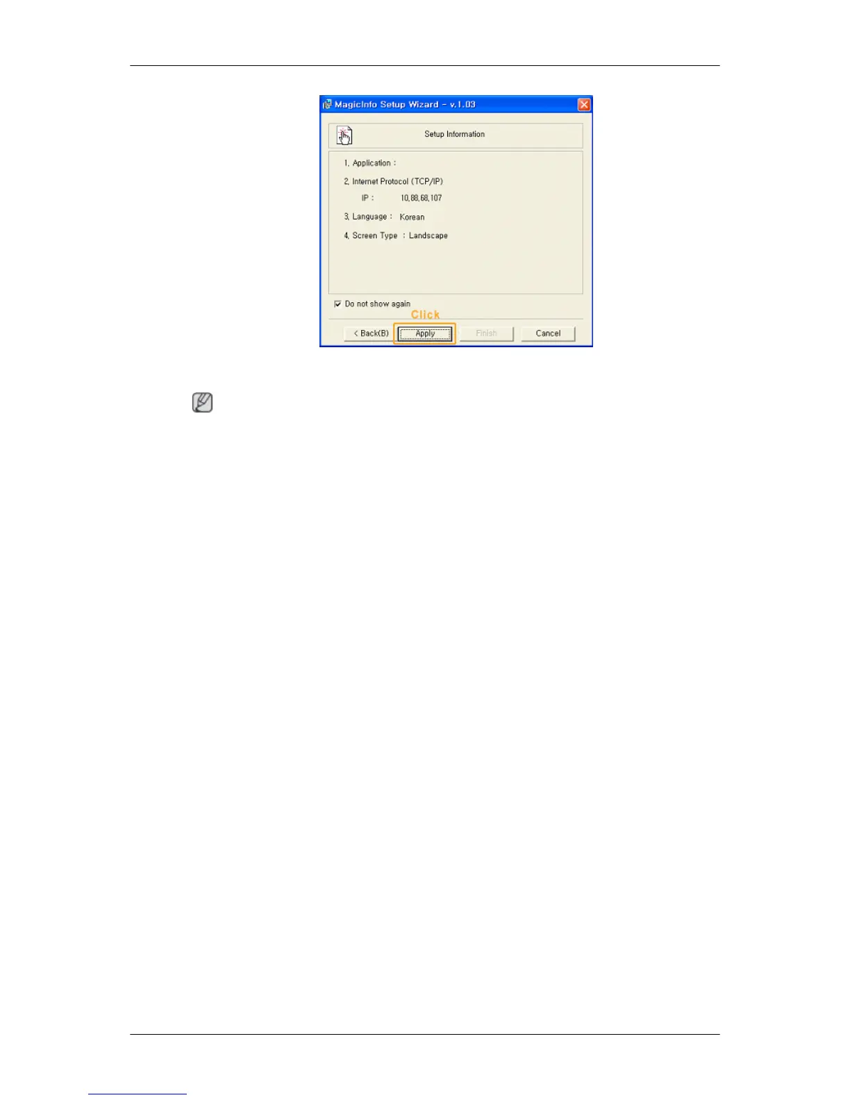 icon is not displayed on the notification area, double click the MagicInfo icon