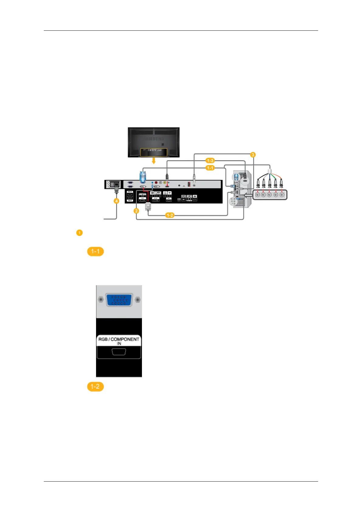 • Connect the D-sub to the 15-pin, [RGB/COMPONENT IN] port on the