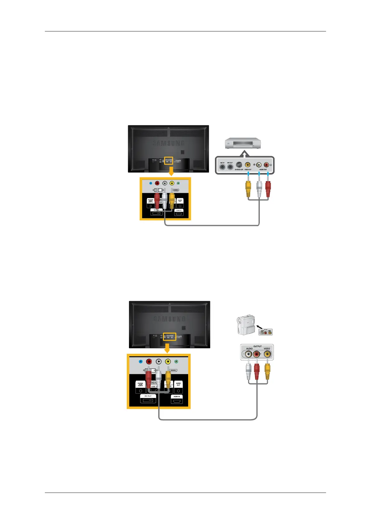 of the camcorder. Connect a set of audio cables between the AUDIO OUTPUT jacks on