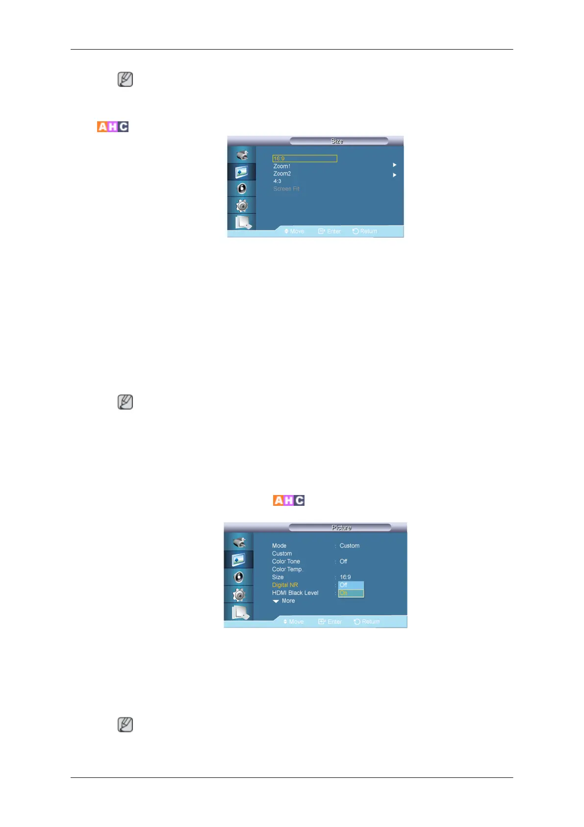 • Zoom 1, Zoom 2 are unavailable in HDMI mode.