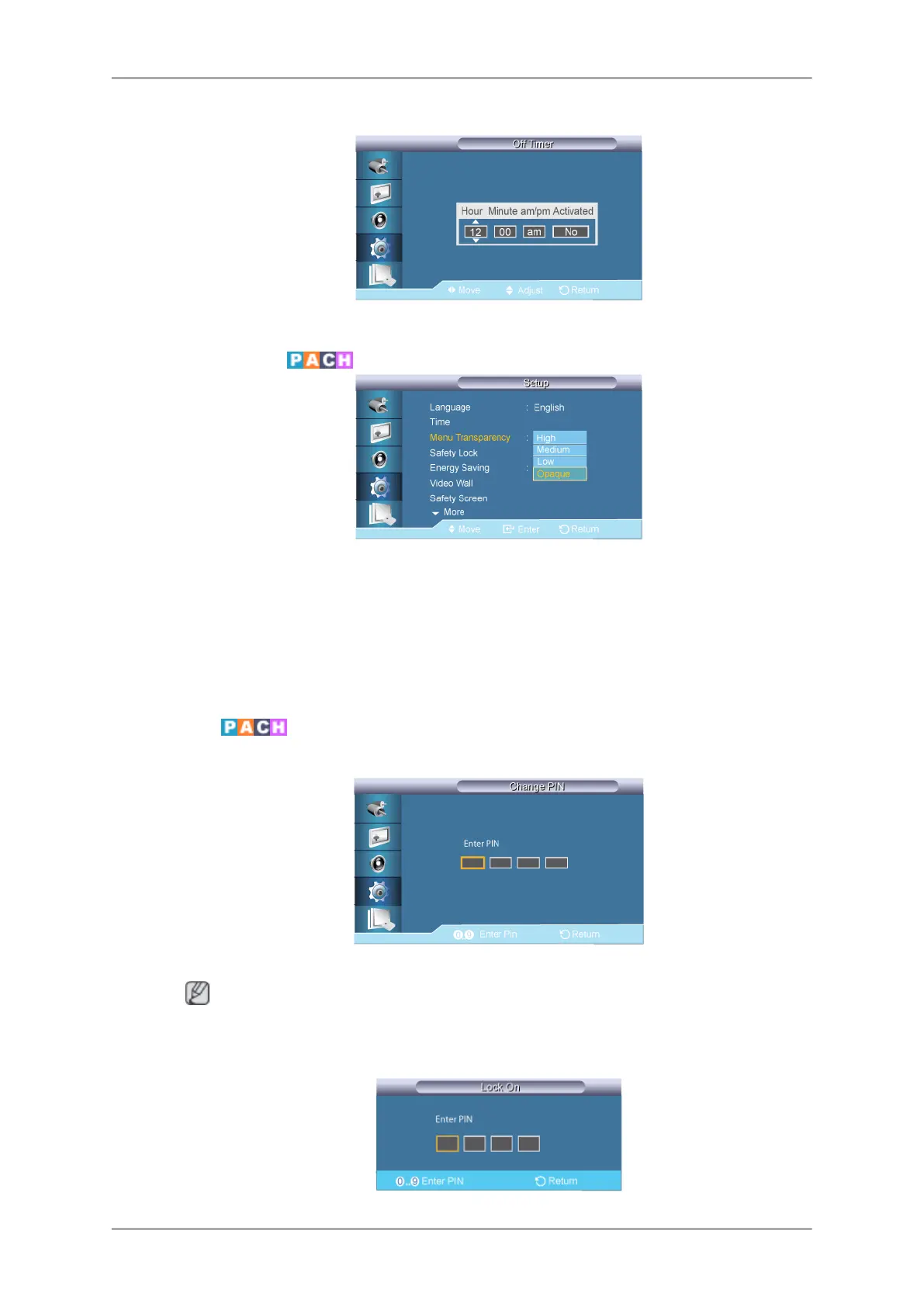 Samsung SyncMaster 650TS-2 - Off Timer; Menu Transparency