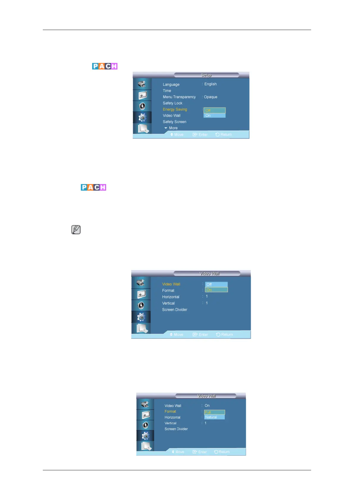When Video Wall is running, the Auto Adjustment, Image Lock, and Size functions are not