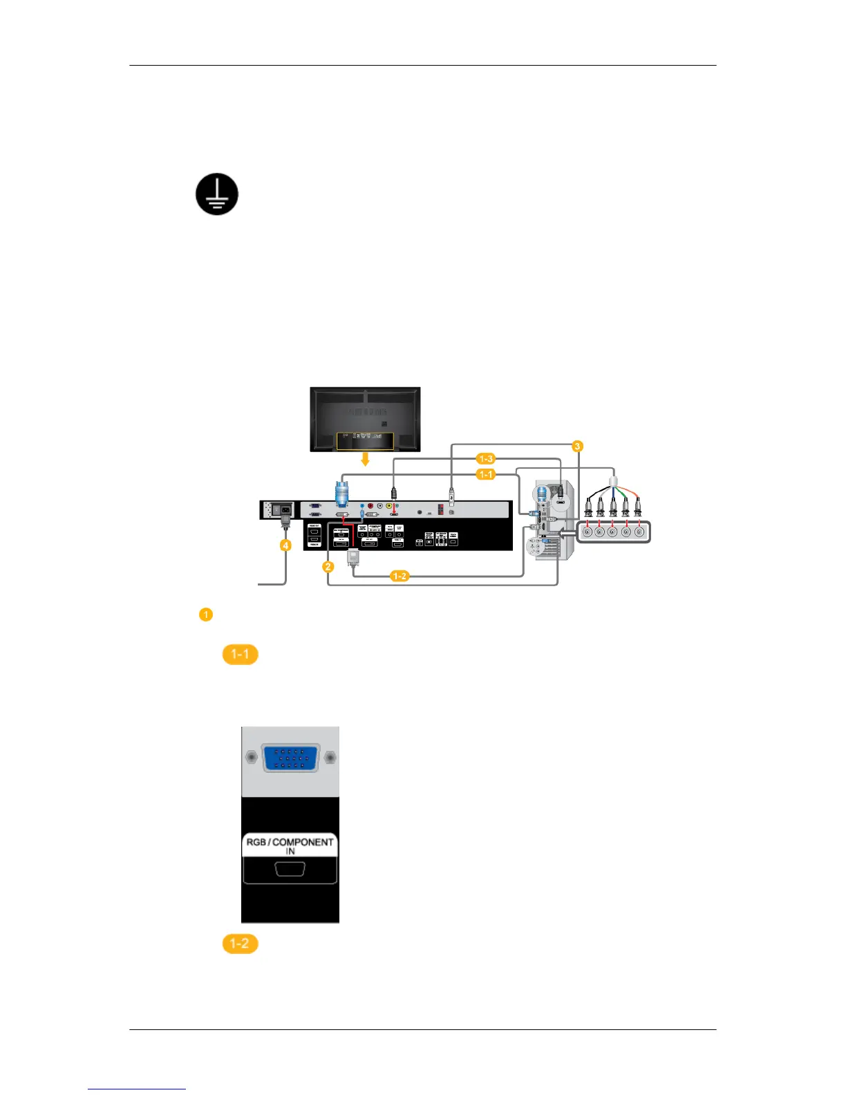• Connect the D-sub to the 15-pin, [RGB/COMPONENT IN] port on the