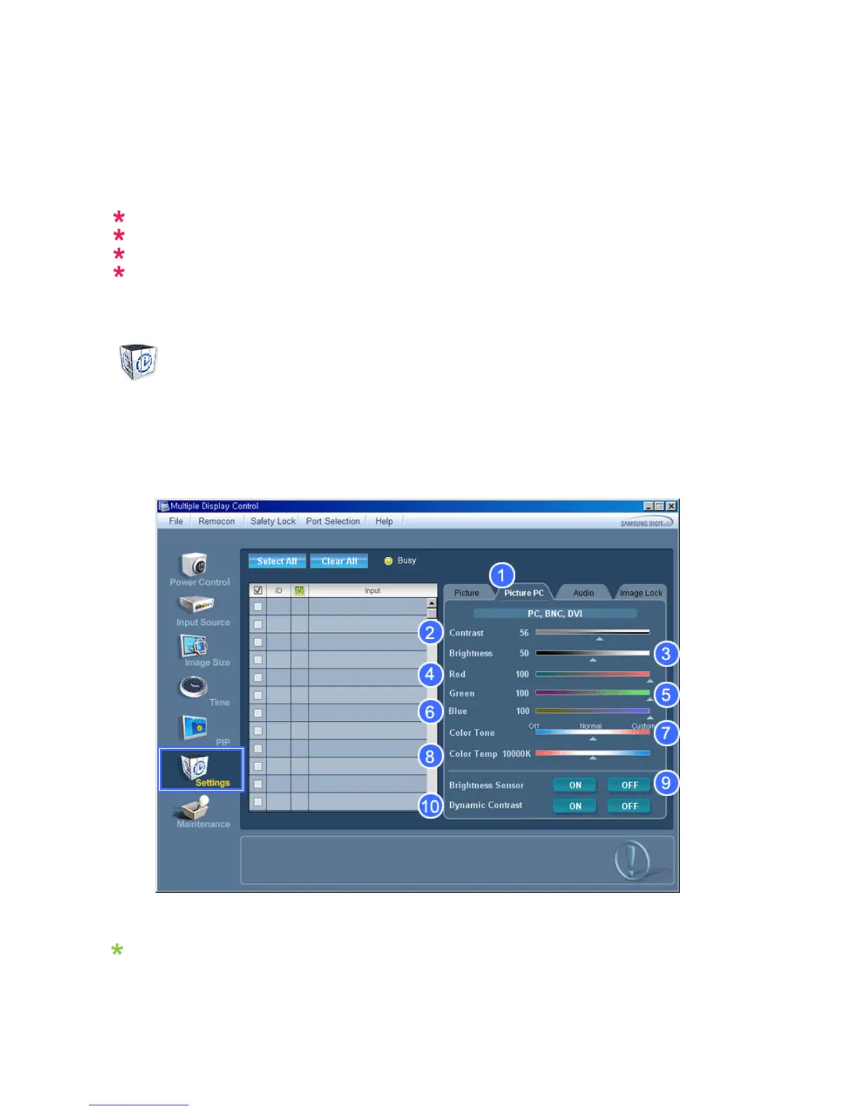 Info Grid shows some basic information necessary to Settings Control. When each function is selected, the set value