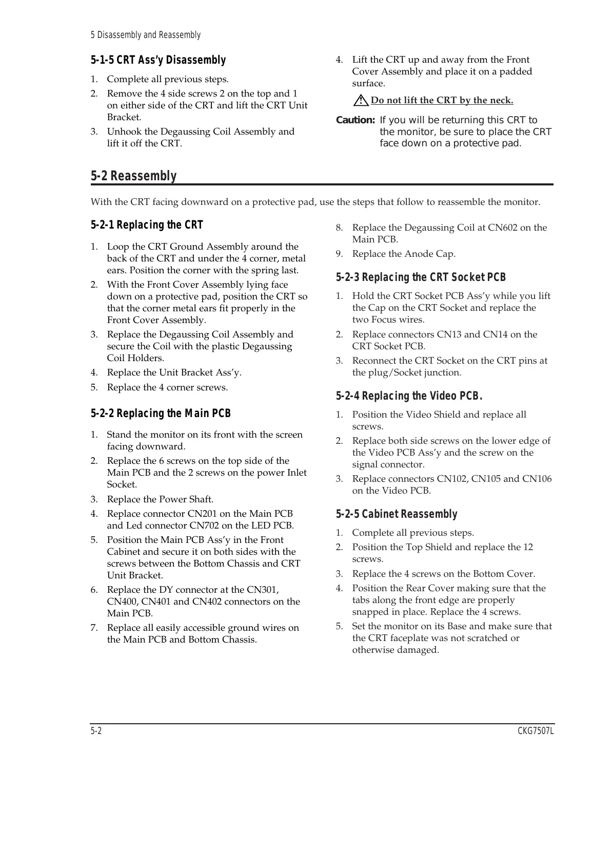 1. Hold the CRT Socket PCB Ass’y while you lift