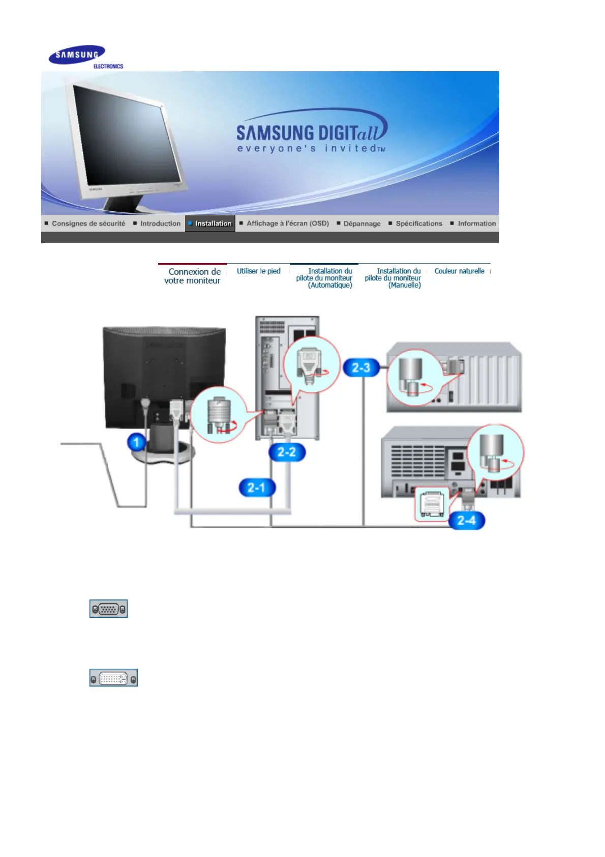 2-2. Utilisation d'un connecteur D-Sub (numérique) sur la carte vidéo. Branchez le Câble DVI sur le port DVI