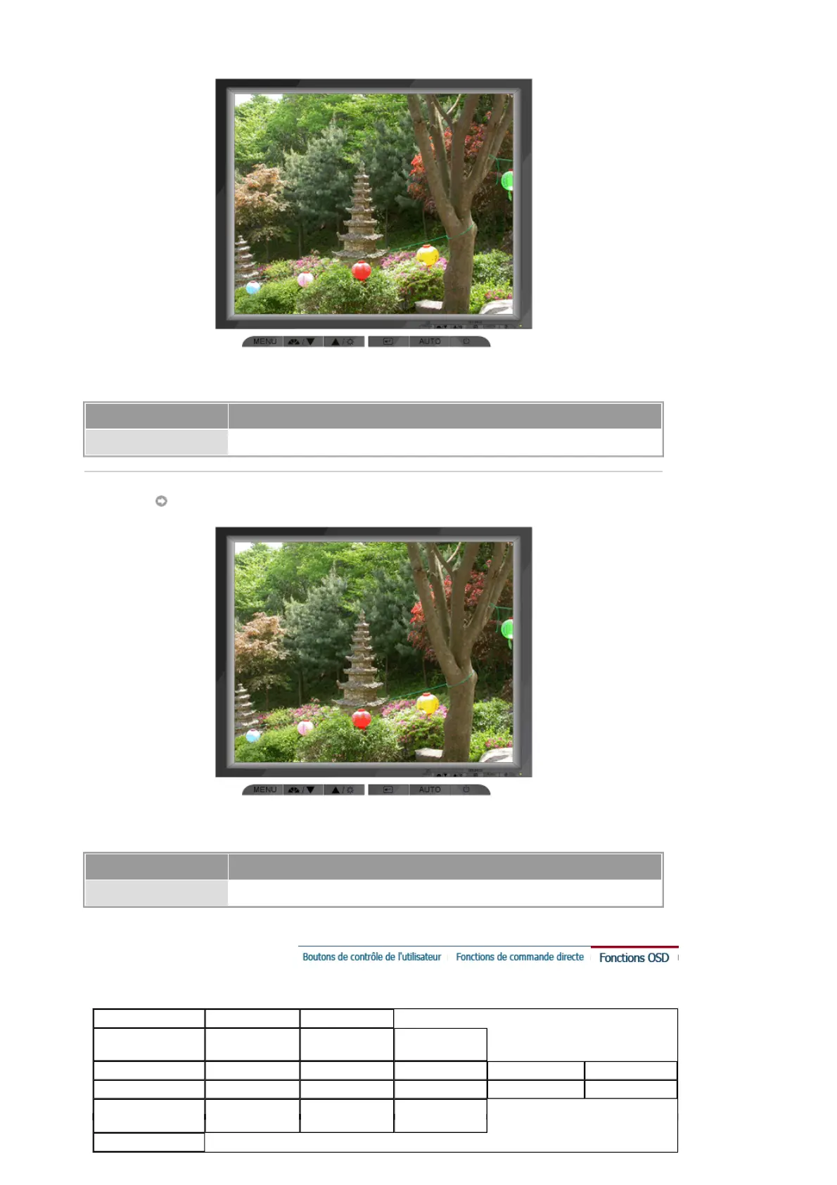 Menu Table des matières
