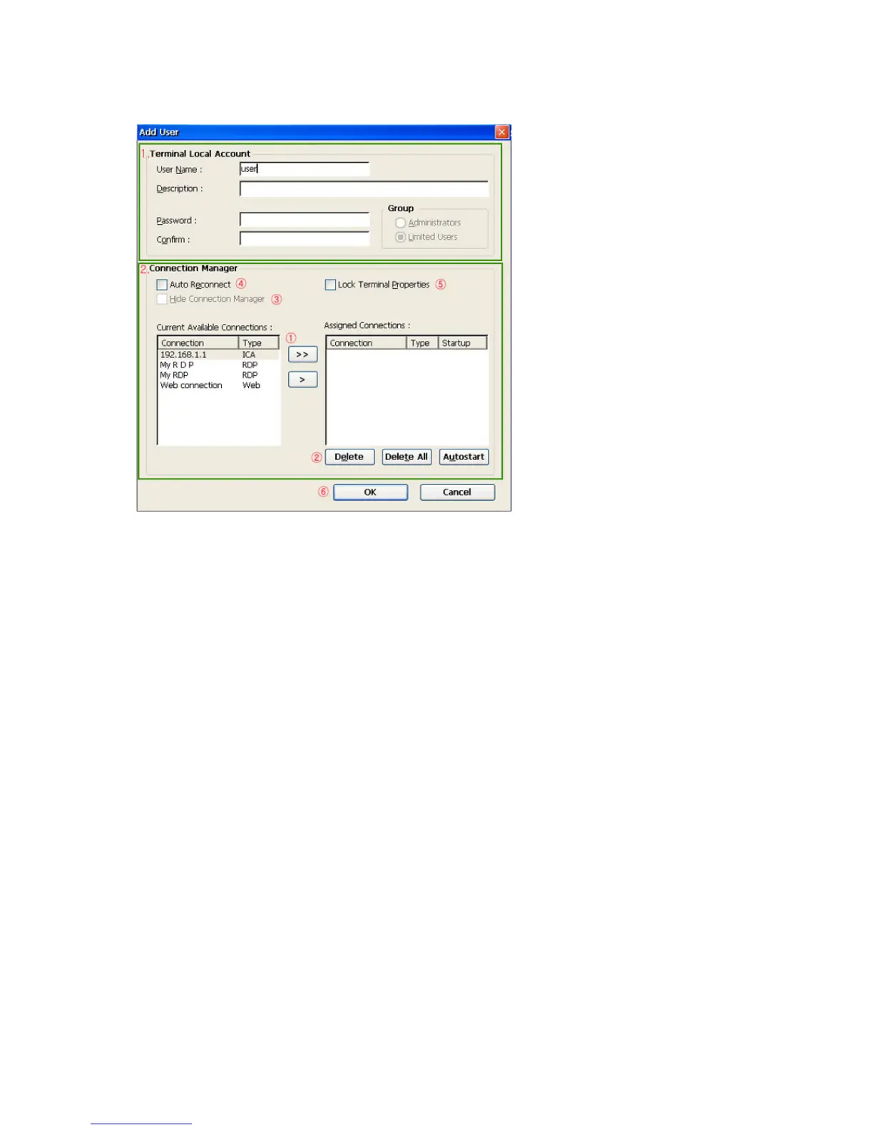 1. You can enter basic information using the Terminal Local Account group. The
