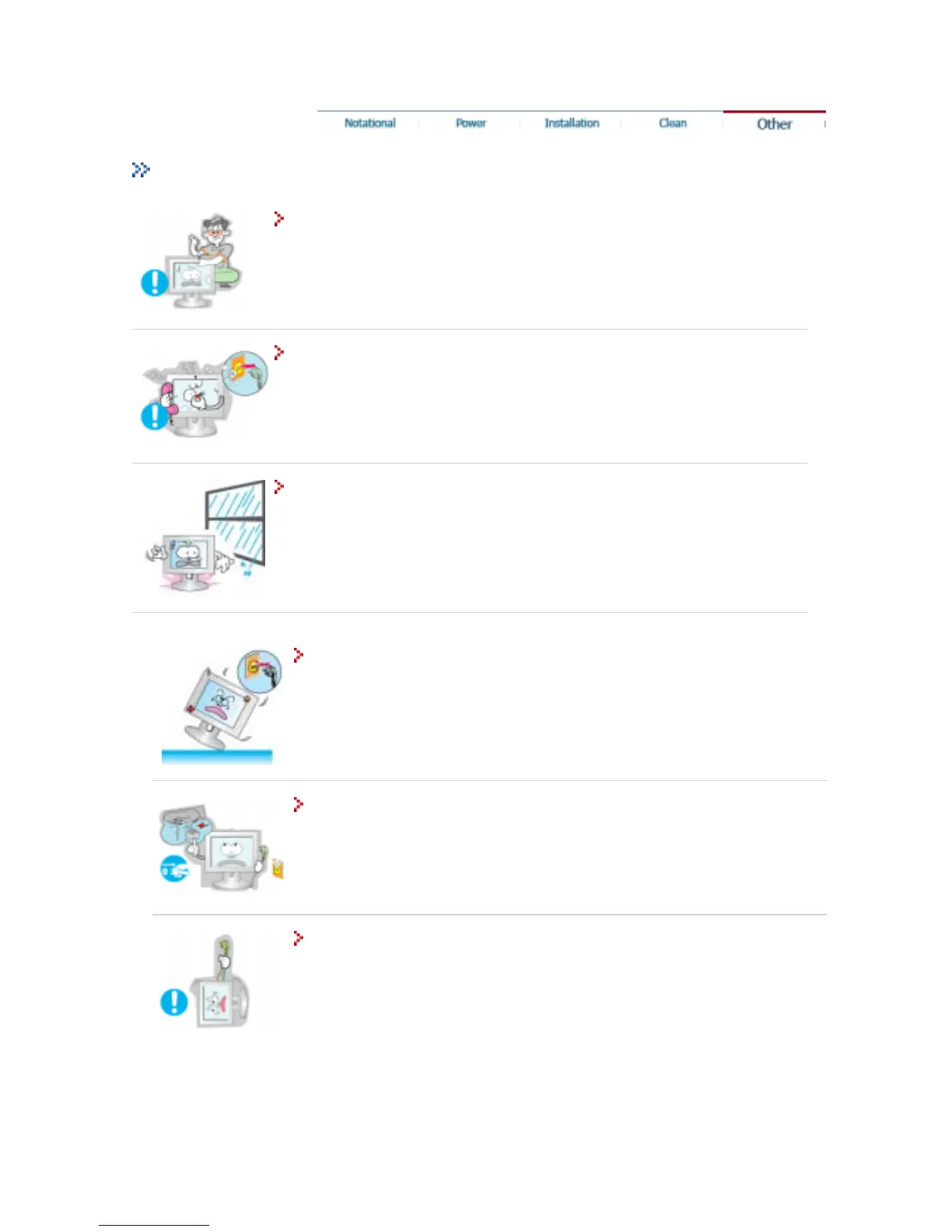 Be careful not to let water drip into the monitor or expose the monitor to